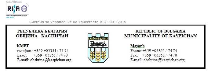 КМЕТ НА ОБЩИНА КАСПИЧАН